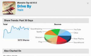En cliquant sur un titre, Monstro vous offre une fiche détaillée avec des statistiques sur les réseaux sur lequel il est le plus partagé. Vous pouvez aussi écouter un extrait ou regarder la vidéo du clip si il existe sur Youtube.